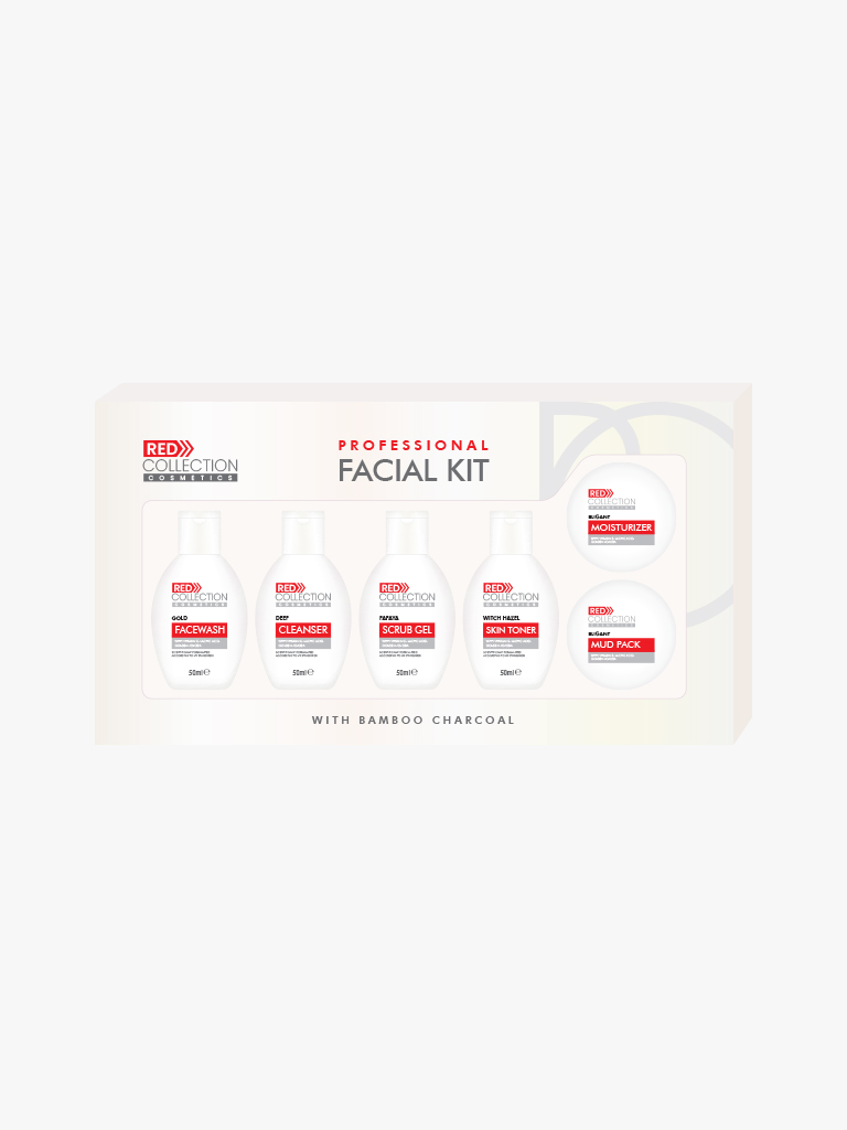 Red Collection Facial Kit contains a total of 6 products (Golld Facewash, Deep Cleanser, Papaya Scrub Gel, Skin Toner, Moisturizer, Mud Pack), which will give you a complete skincare set to pamper yourself.